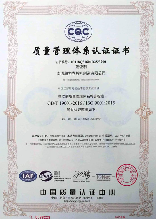 我公司為二輥卷板機行業(yè)標(biāo)準(zhǔn)起草單位。二輥卷板機為我公司生產(chǎn)的高新技術(shù)產(chǎn)品(證書編號:110621G0533N),榮獲南通市科學(xué)進步獎。其一輥為鋼輥,另一輥為鋼輥芯外包彈性層,板材置于兩輥間并調(diào)整其間距,使其接觸——加壓——膠輥變形,板材隨之局部變形,驅(qū)動兩輥旋轉(zhuǎn),使板材連續(xù)彎卷成型。板料一次卷制即可加工成型,無明顯直邊,卷圓精度高。是高效、高精度、高度自動化的卷板加工設(shè)備。